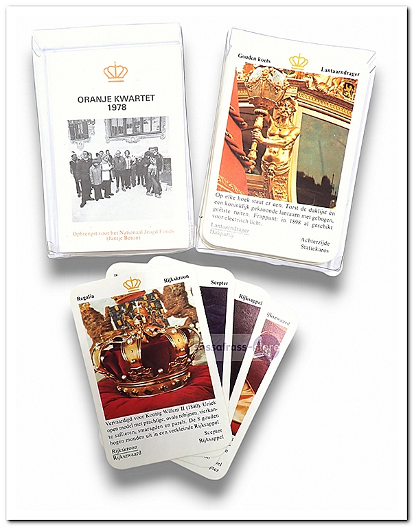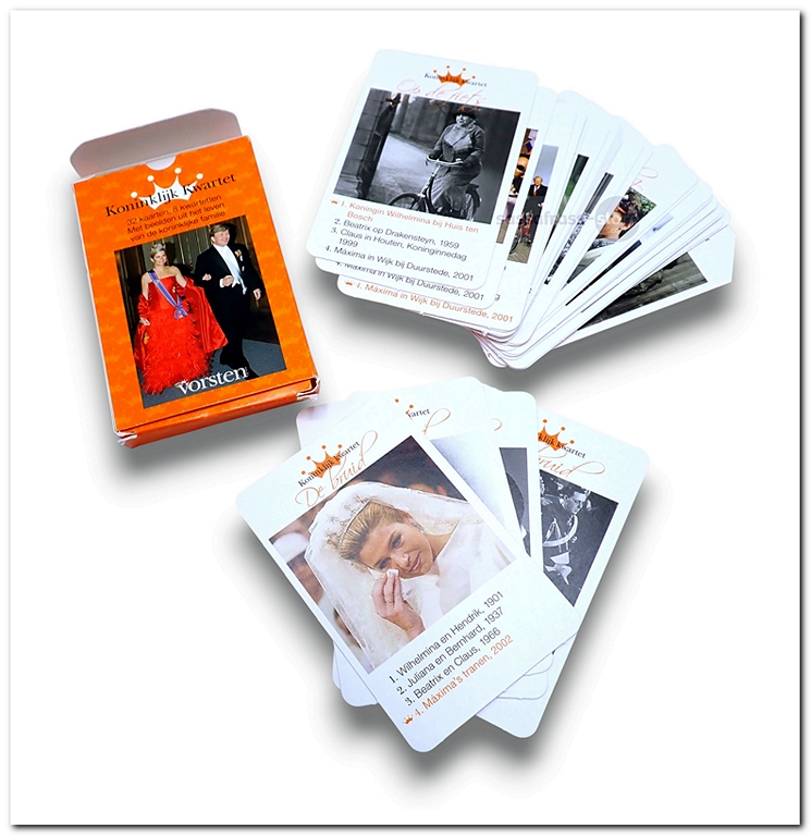 Dit vintage kwartetspel bestaat uit acht kwartetten met foto’s uit de periode waarin Beatrix nog kroonprinses was.