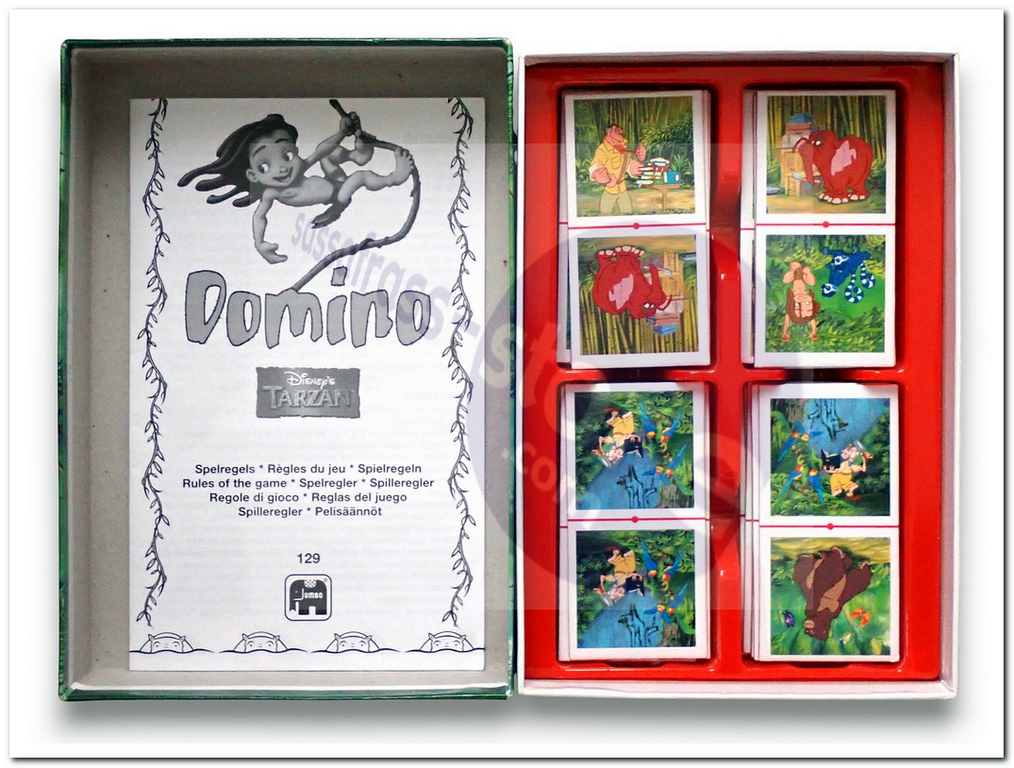 Een vrolijk domino voor kleuters met als thema Tarzan.
