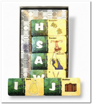 Bij dit leerzame aanlegspel kunnen één of meer kinderen kaarten aan elkaar leggen, die aan de ene kant een leuke afbeelding hebben en aan de andere kant de beginletter van een ander plaatje.