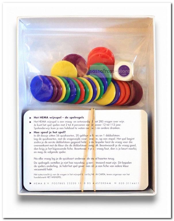 Het HEMA wijnspel is een vraag- en antwoordspel met 280 vragen over wijn.
