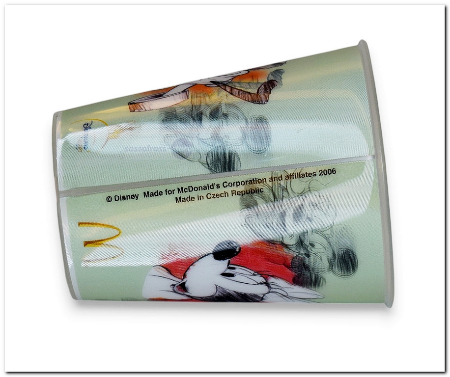 Zoek je een uniek verzamelstuk? Deze McDonald's Happy Meal-beker uit 2006 is de perfecte keuze. Met een schitterend holografisch ontwerp van Mickey, Minnie, Donald en Pluto is dit item een blikvanger in elke collectie.