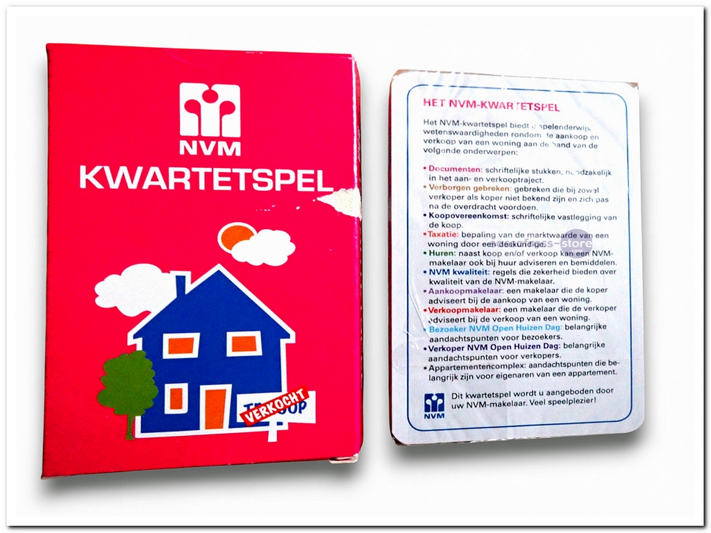 Het NVM-kwartetspel biedt u spelenderwijs wetenswaardigheden rondom de aankoop en verkoop van een woning aan de hand van bijv. de volgende onderwerpen: Documenten, Verborgen gebreken, Koopovereenkomst, Taxatie en Huren.