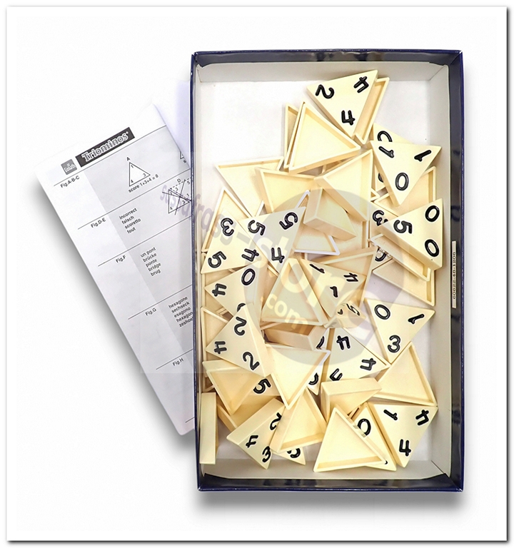 De meest fascinerende variant van het bekende domino-spel. Nu met een extra dimensie door de driehoekige stenen. Een spel van inzicht, tactiek en logica, voor jong en oud.