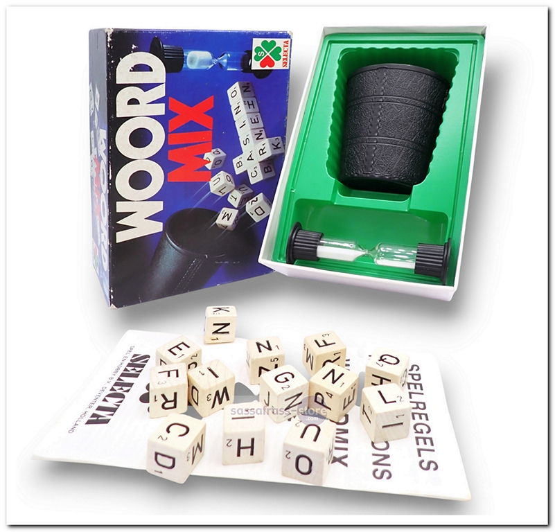 Gooi om de beurt de 13 dobbelstenen op tafel en laat zien hoe goed je bent met woorden, maar houd wel de zandloper in de gaten.