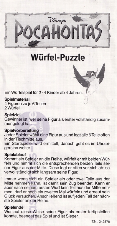 Dit is een combinatie van een spelletje en een puzzel, met de bekende figuren uit Disney's Pocahontas tekenfilm.