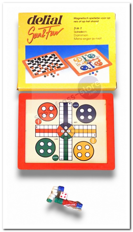 Dammen en mens-erger-je-niet: ideaal voor onderweg, op vakantie of aan zee. De magnetische stukken blijven altijd op hun plaats.
